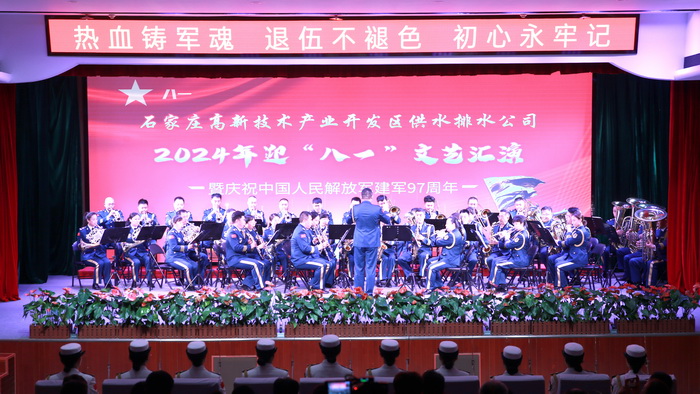 值“八一”建军节到来之际,为了缅怀先烈,传承红色基因,表彰在岗位上继续发光发热的优秀复转军人,7月30日,公司举办以“热血铸军魂,退伍不褪色,初心永牢记”为主题的庆祝中国人民解放军建军97周年文艺汇演。活动现场气氛热烈,内容丰富,展现了复转军人的风采,深深触动了每一名观众的心。
