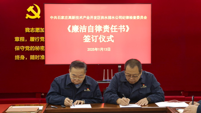 1月13日,公司党委举行廉洁自律责任书签订仪式,纪委书记王晖与党委班子成员签订《廉洁自律责任书》。