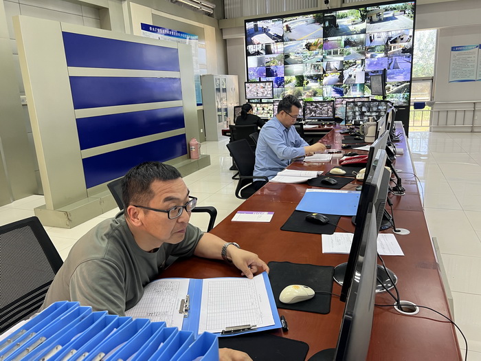 刚刚结束倒闸操作,张文文马上接手中控室的监控工作,假期期间的运行情况较平时有所变化,上午9点左右迎来用水高峰,她不停翻看着各个供水系统的水压、浊度等参数,针对变化随时应变,调整供水设备的启闭,确保用户生产、生活用水平稳。